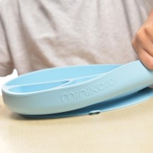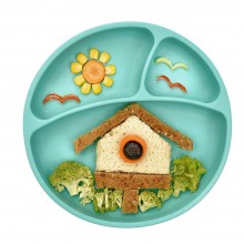 Sugkopp på undersidan som gör att tallriken sitter fast på bordsytan. Utvecklar finmotoriken hos barn. Smarta fack för uppdelning av maten. Tallriken fungerar i ugn och mikrovågsugn upp till 200 grader.